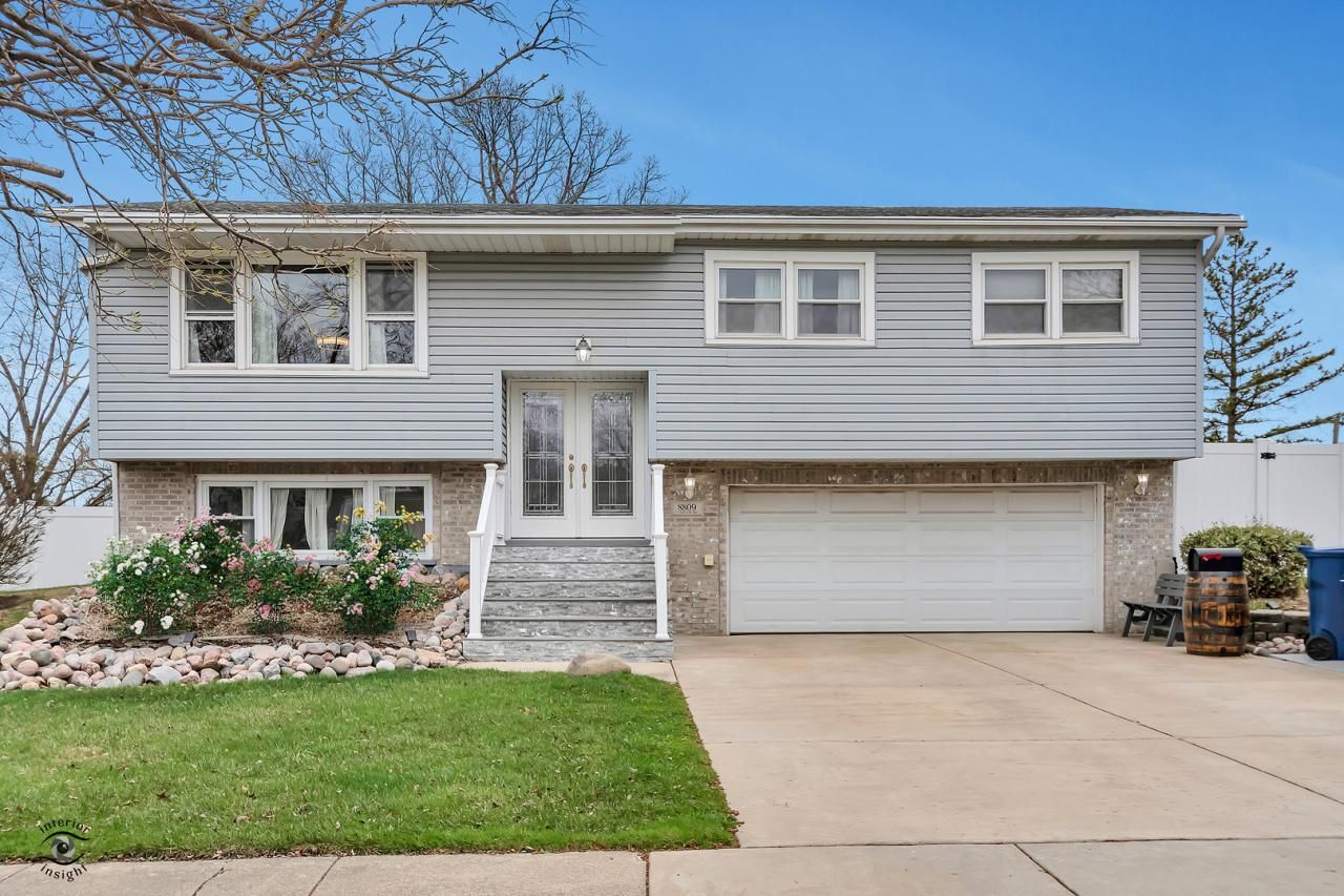 Welcome to 8809 Willow Rd -a 1967 raised ranch blending timeless charm with modern upgrades! This 3-bed, 2-bath home features hardwood floors on the main level, formal living room, full bathroom and an updated kitchen in 2021 with custom soft-close shaker cabinets, granite countertops, and stainless steel appliances, pantry and coffee bar. Electric service updated to 200 amp during this remodel! Direct access from the kitchen to your new no maintenance deck with stairs down to the oversized brick paver patio overlooking your spacious-fully fenced yard, complete with built in firepit! The lower-level bath is home to your second fully bath, remodeled in 2010 with custom shower surround, laundry room, family room, gas fireplace, storage and access to the patio. 2.5 car attached garage offers plenty of storage and access to the backyard where you'll find the shed for additional storage if needed! This home is move-in ready and offers something for everyone! Acres of forest preserve to the west, just blocks from the recreation center, minutes from shopping and dining and quick access to I294 via 95th St or I55 via LaGrange. Sought after school districts 117 and high school district 230- AA Stagg. Don't miss your chance to make it yours! MULTIPLE OFFERS HAVE BEEN RECEIVED. SELLERS ARE ASKING FOR HIGHEST AND BEST MONDAY 4/7 5PM.